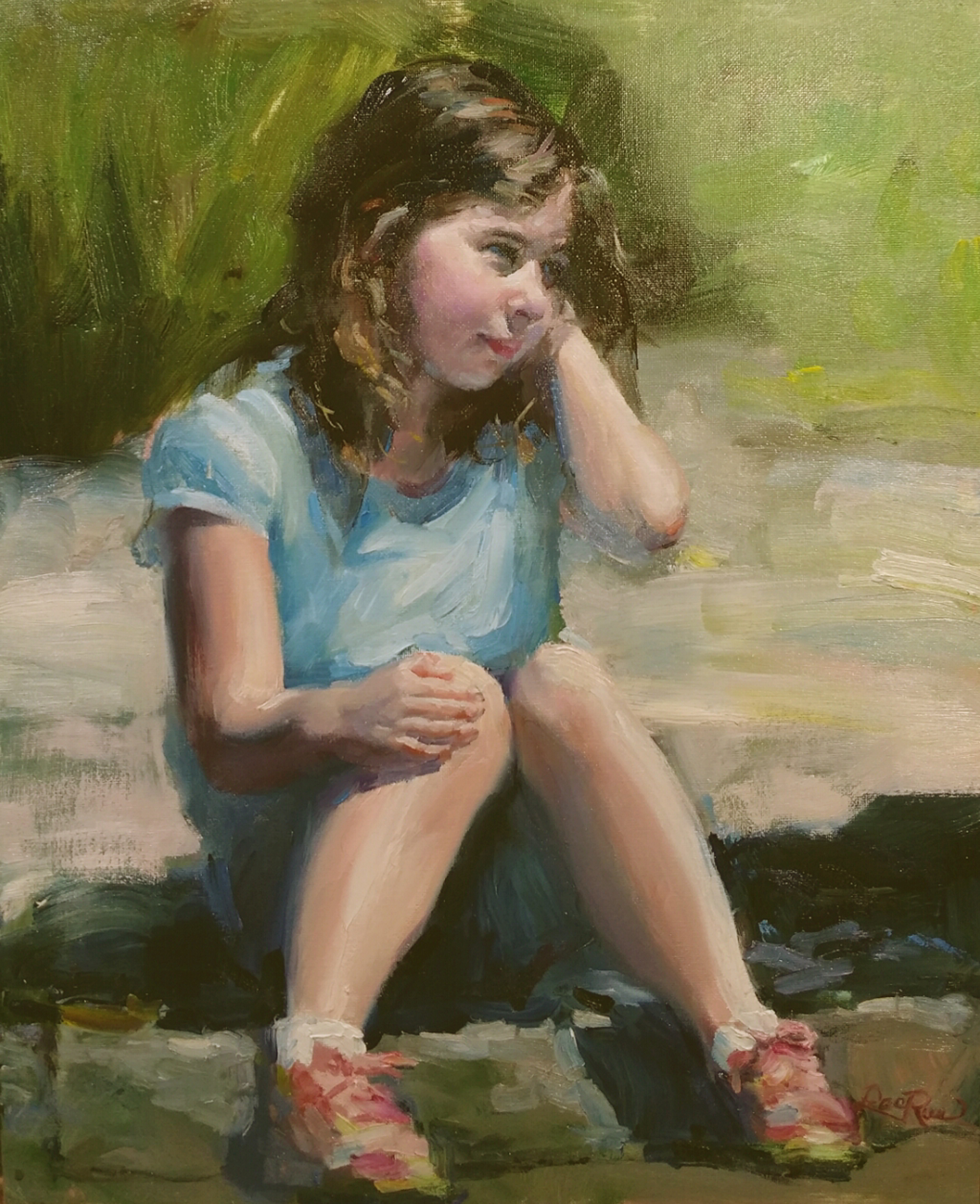 他在快干的画布上签下了自己的英文名字,Lee Rue。