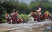 四位骑手和四匹马活跃了整幅画的色彩,骑手上衣的斑杂