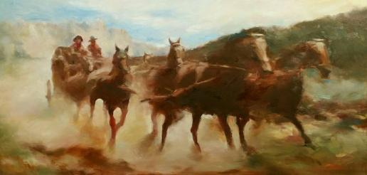 100 多年前,西部淘金潮时期,美帝龙马(富国)镖局,六匹骏马,一辆押宝马